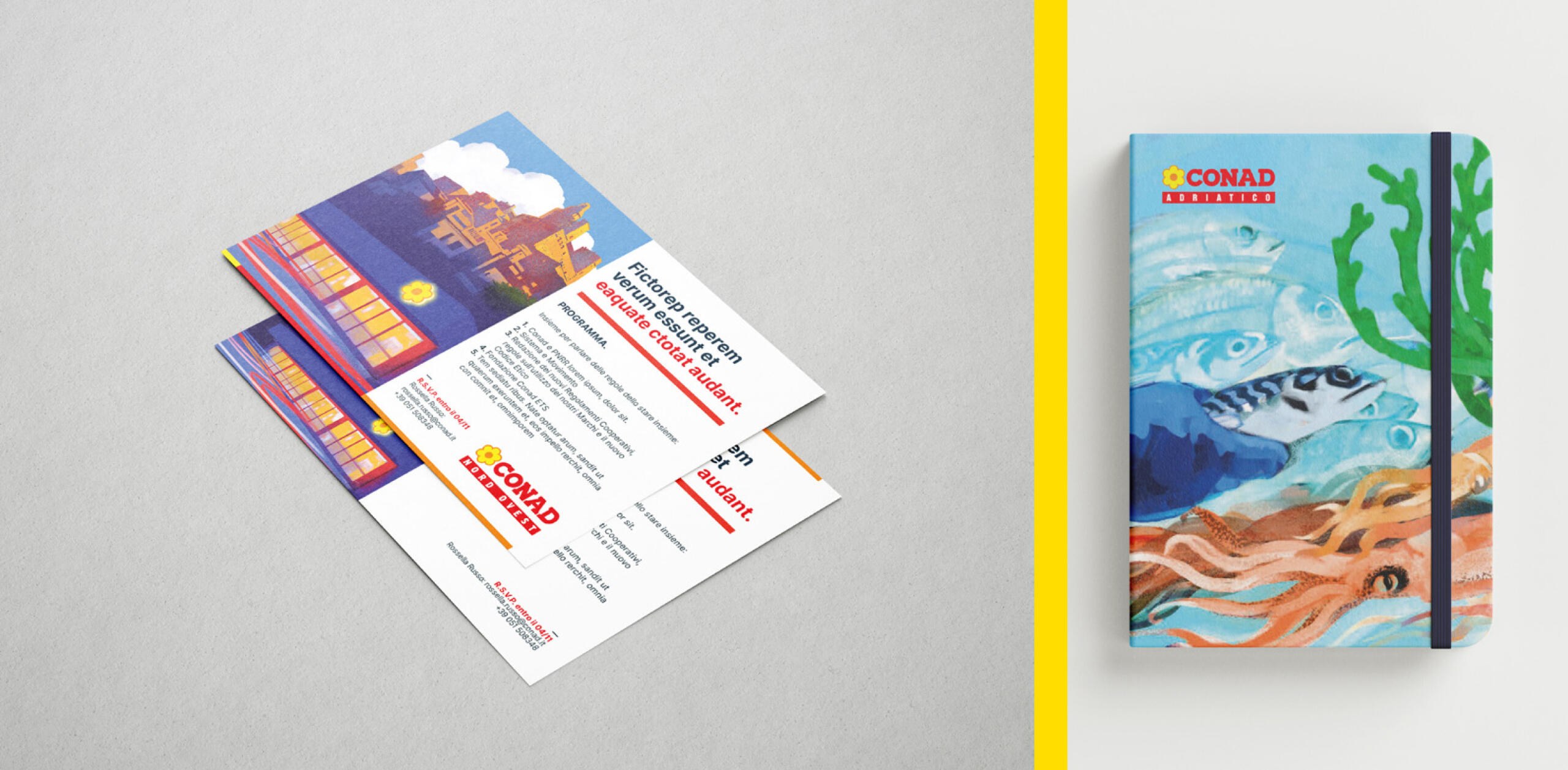MMBS ha curato l’intero restyling della brand identity corporate di Conad Italia, definendo tipografia, palette cromatica e template grafici. Progettato il sistema di iconografia e infografia, ottimizzando la comunicazione visiva per il brand. Un lavoro complesso che ha richiesto una pianificazione ed esecuzione meticolosa in ogni dettaglio.